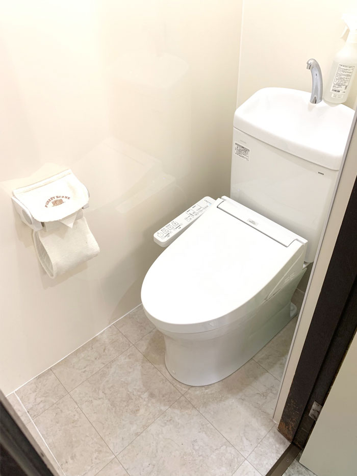トイレ:TOTO ピュアレストQR 温水洗浄便座:TOTO ウォシュレットSB 壁パネル:日本デコラックス パニート |